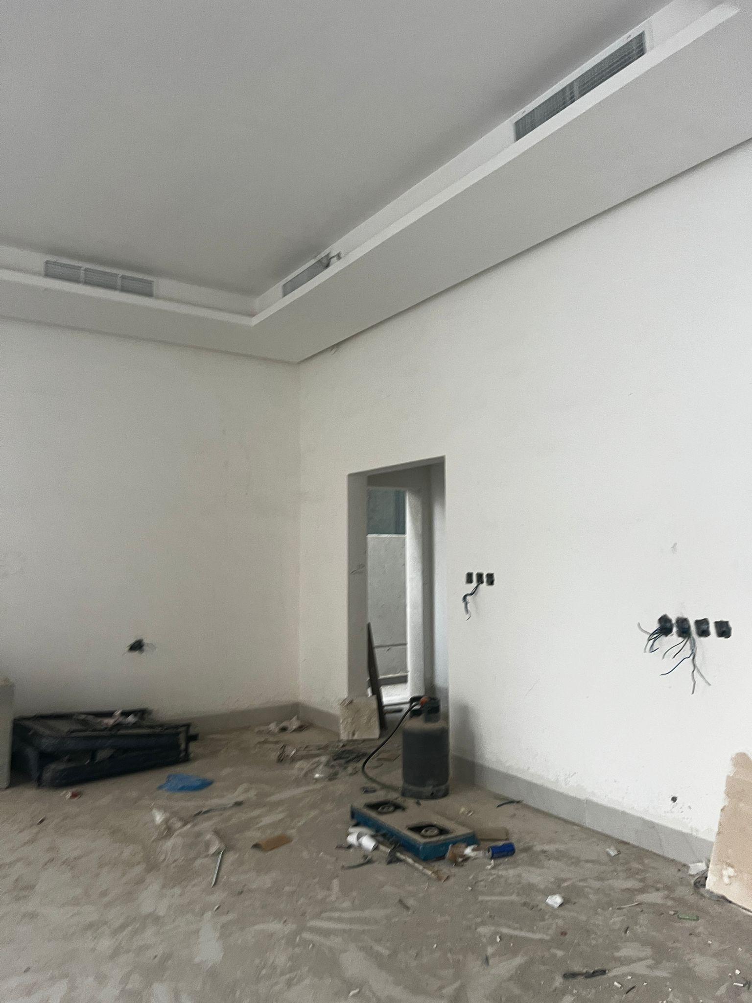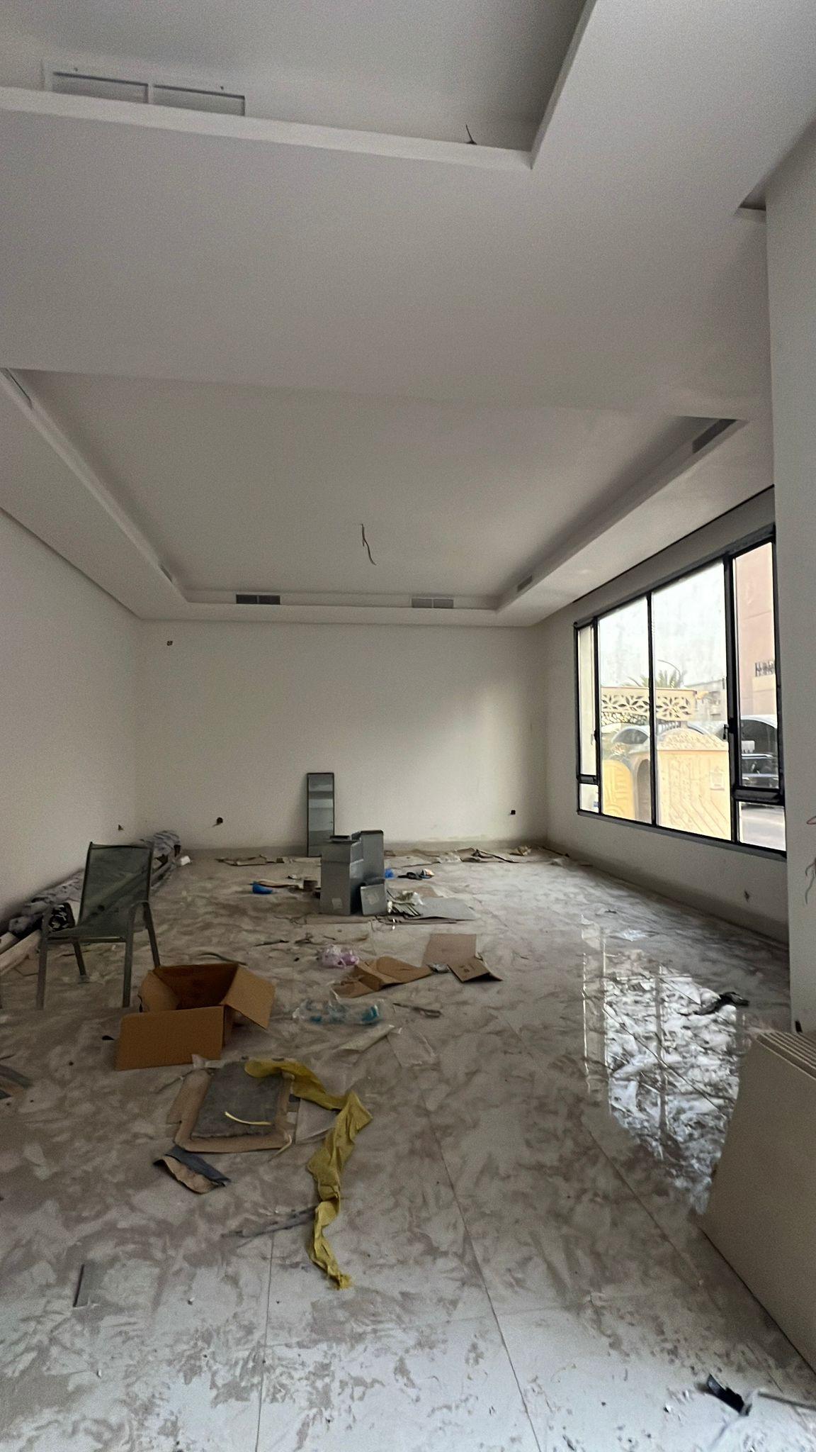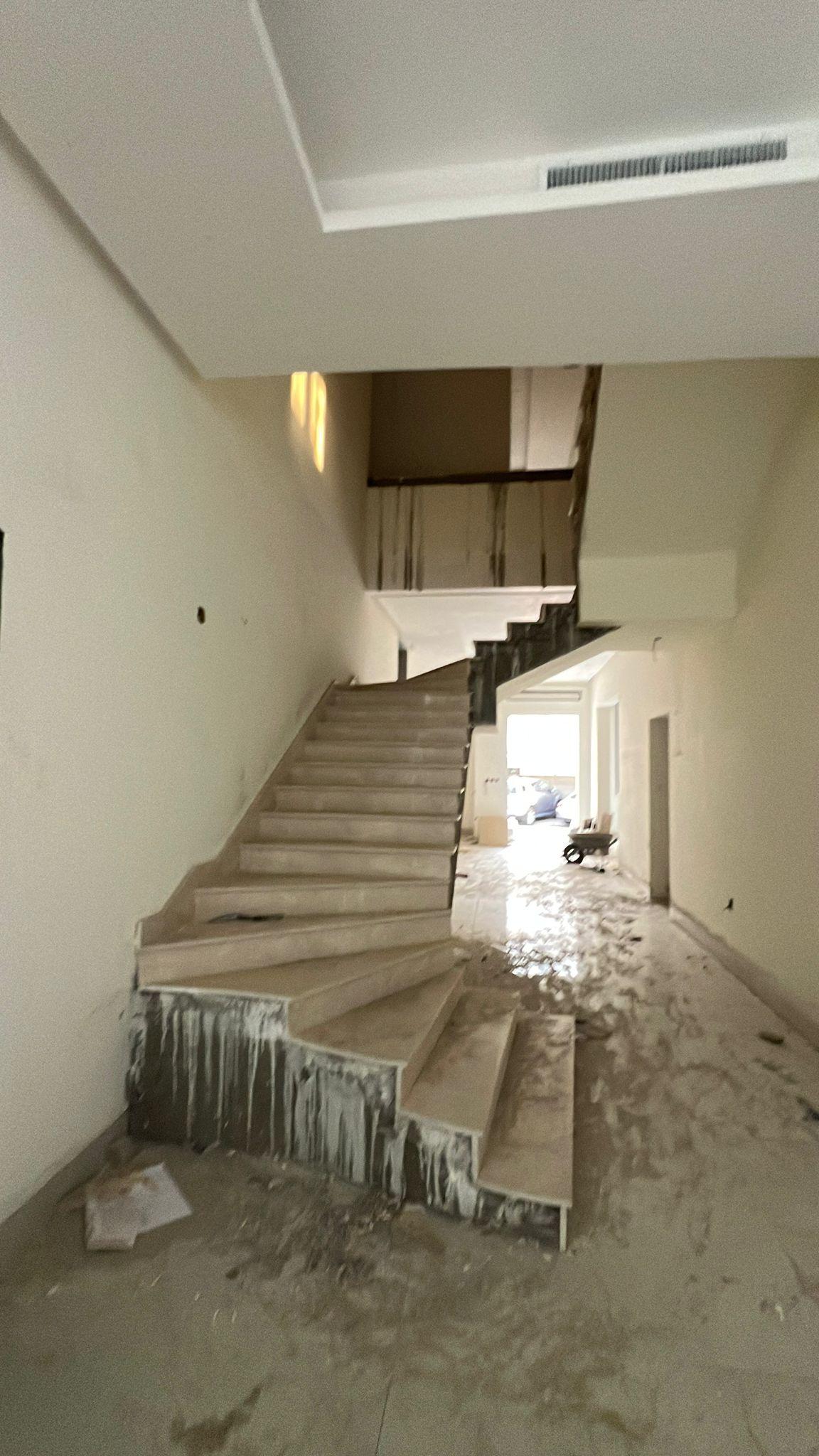فلة راقية بثلاثة أدوار وربع يعتمد هذا التصميم على أسلوب العمارة الحديثة من خلال استخدام الكتل الهندسية المتدرجة التي تخلق توازناً بصريًا جذابًا. الواجهة الأمامية مصممة بخطوط نظيفة وزوايا واضحة، مع تداخل رائع بين اللون الرمادي للحجر الصناعي واللون الأبيض للدهانات، ما يمنح المبنى طابعًا عصريًا أنيقًا.